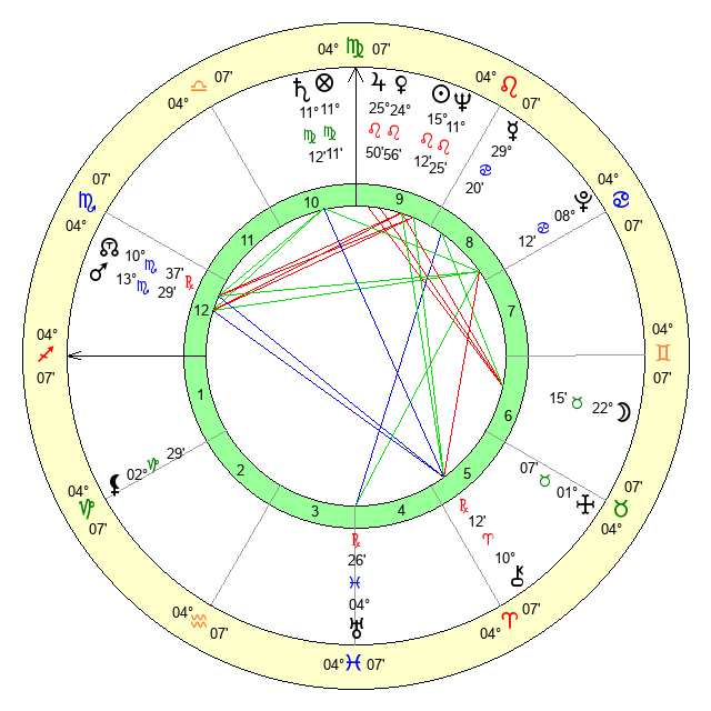 | Saturn | 11 Virgo 51 | 1 Aries 15 | 23 Virgo 43 |