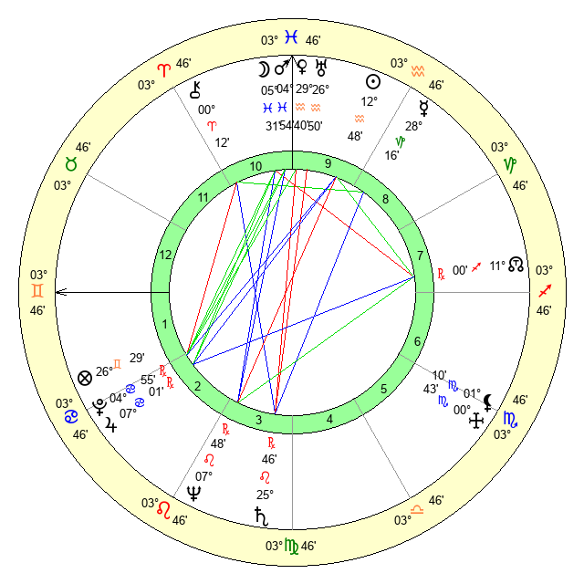 | Moon | 5 Pisces 28 | 9 Aries 21 | 19 Capricorn 17 |
