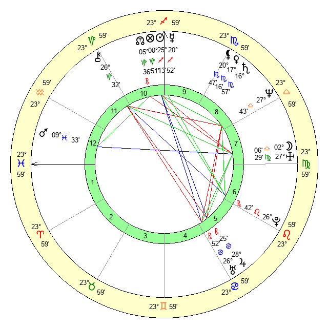 | Saturn | 17 Scorpio 25 | 25 Pisces 24 | 21 Scorpio 39 |