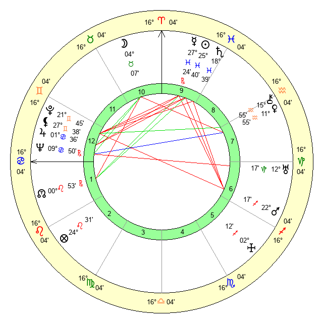 | Neptune | 9 Cancer 51 | 29 Pisces 30 | 12 Cancer 40 |