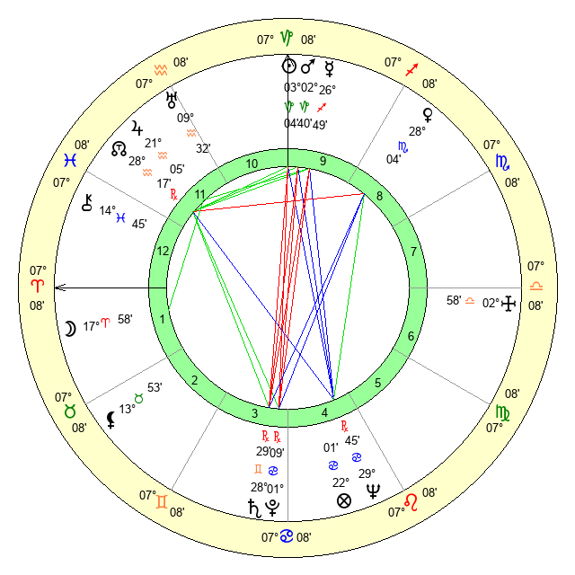 | Saturn | 29 Gemini 17 | 25 Pisces 44 | 28 Gemini 9 |