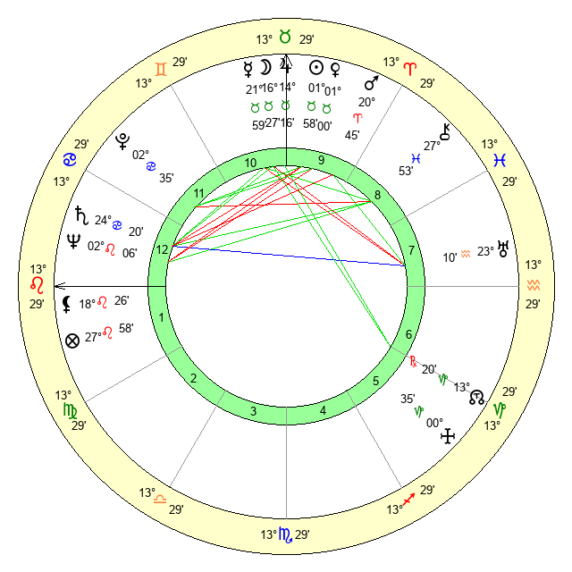 | Moon | 16 Taurus 26 | 22 Aquarius 59 | 1 Taurus 23 |