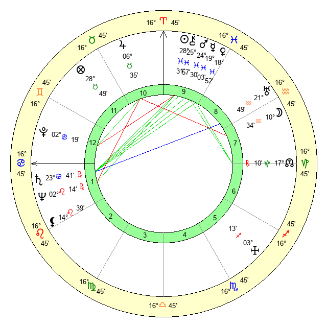 | Sun | 28 Pisces 31 | 29 Pisces 20 | 13 Cancer 3 |