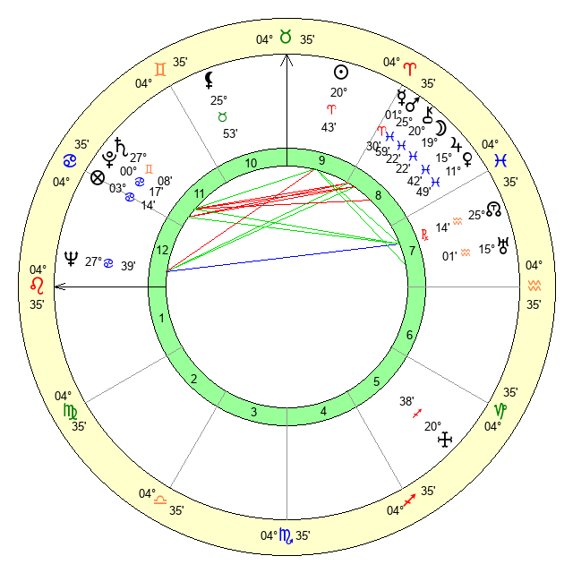 | Sun | 20 Aries 43 | 22 Aries 3 | 6 Leo 25 |