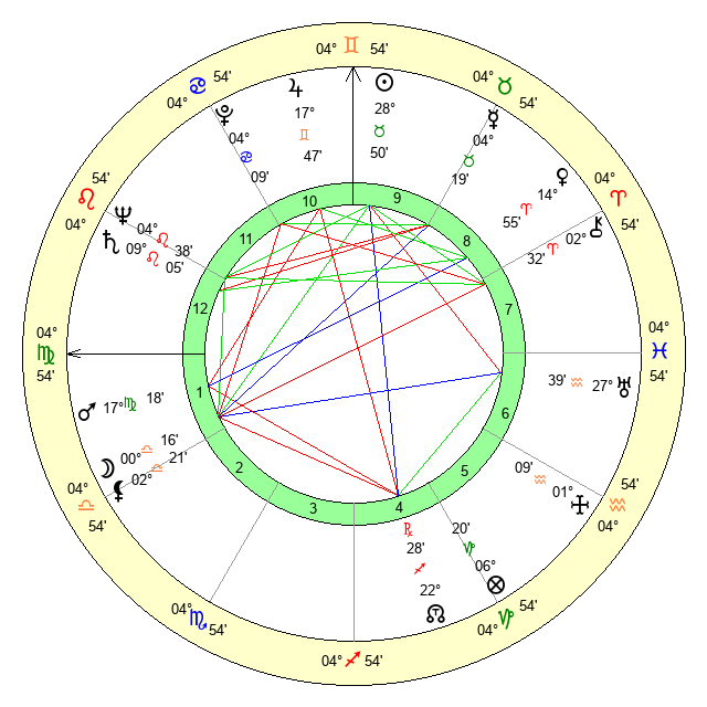| Moon | 0 Libra 15 | 2 Pisces 27 | 2 Virgo 59 |