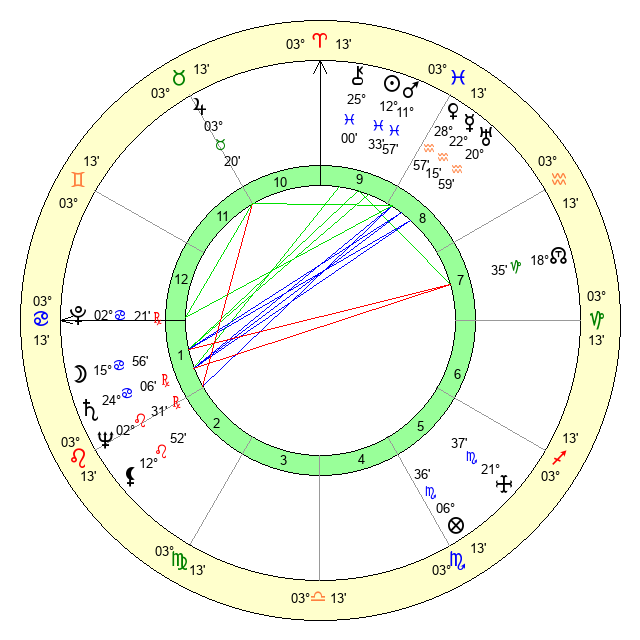 | Sun | 12 Pisces 33 | 13 Pisces 22 | 27 Gemini 48 |