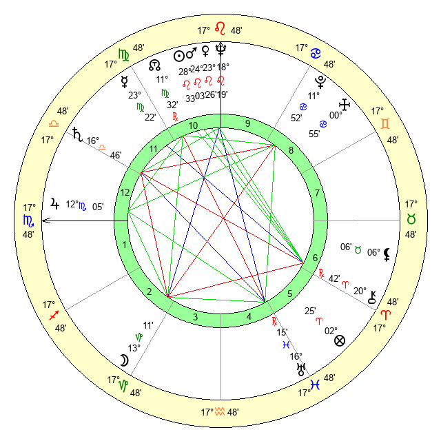 | Moon | 13 Capricorn 7 | 23 Leo 4 | 25 Virgo 44 |