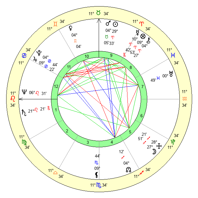 | Sun | 29 Aries 33 | 0 Taurus 52 | 11 Leo 14 |