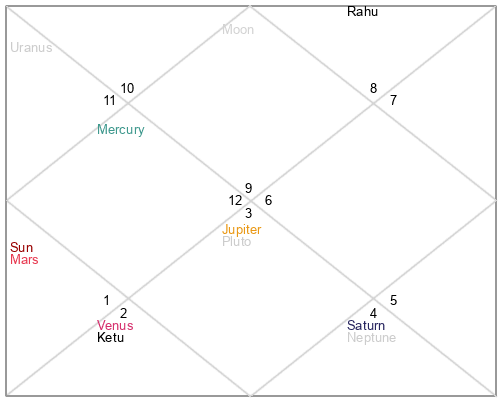 | Ketu | 5 Gemini 53 | 25 Virgo 41 | 0 Gemini 17 |