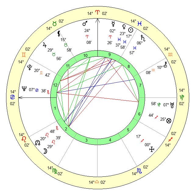 | Neptune | 7 Cancer 38 | 29 Pisces 12 | 10 Cancer 16 |