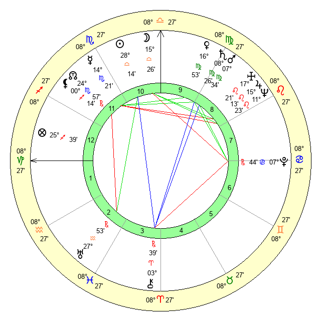 | Mars | 7 Virgo 34 | 20 Scorpio 53 | 1 Scorpio 41 |
