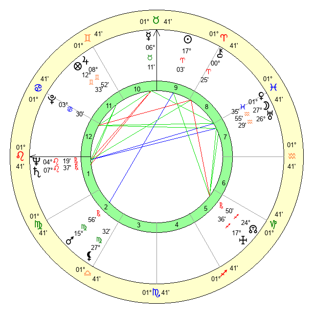| Neptune | 4 Leo 19 | 0 Aries 18 | 6 Leo 34 |