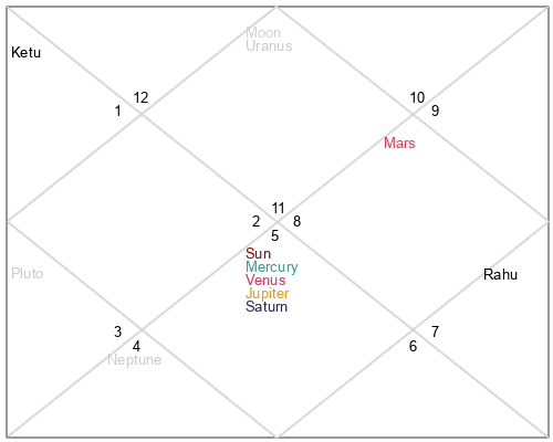 | Rahu | 9 Scorpio 31 | 18 Pisces 41 | 3 Scorpio 58 |