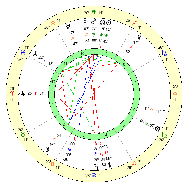 | Moon | 16 Gemini 1 | 16 Leo 8 | 13 Gemini 2 |