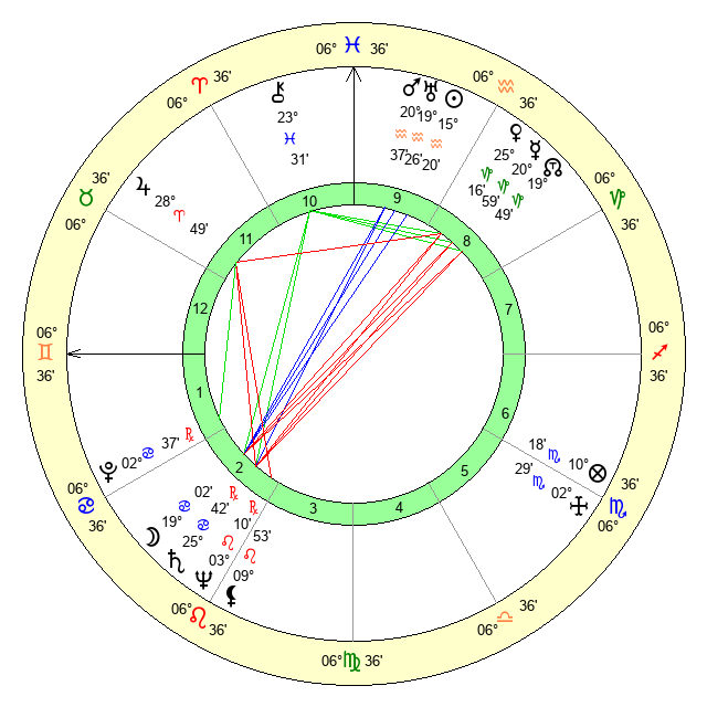 | Sun | 15 Aquarius 20 | 16 Aquarius 8 | 1 Gemini 58 |