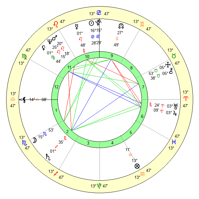 | Moon | 15 Scorpio 53 | 4 Capricorn 16 | 27 Gemini 40 |