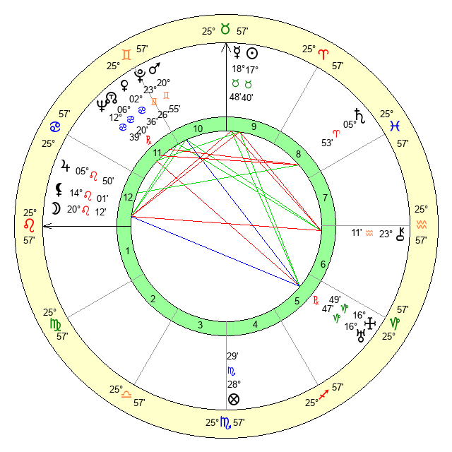 | Moon | 20 Leo 6 | 4 Libra 51 | 25 Scorpio 45 |