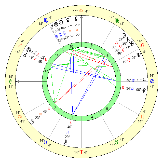 | Mercury | 12 Scorpio 51 | 29 Scorpio 13 | 14 Aquarius 28 |