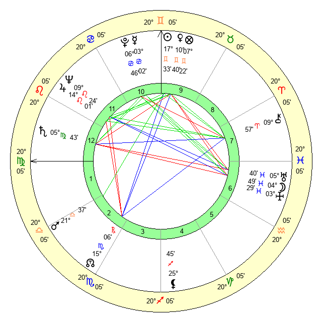 | Saturn | 6 Virgo 25 | 0 Aries 51 | 17 Virgo 21 |