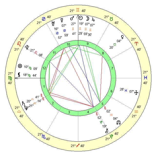 | Moon | 7 Gemini 52 | 13 Sagittarius 11 | 15 Capricorn 29 |