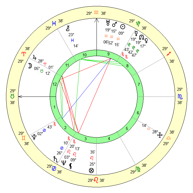 | Moon | 5 Taurus 14 | 12 Aquarius 20 | 13 Aries 58 |
