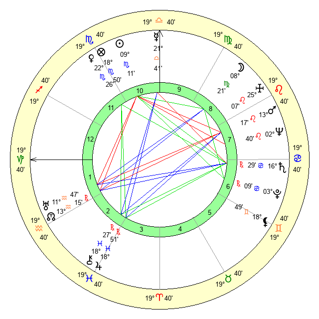 | Moon | 8 Virgo 20 | 0 Aries 52 | 19 Virgo 38 |