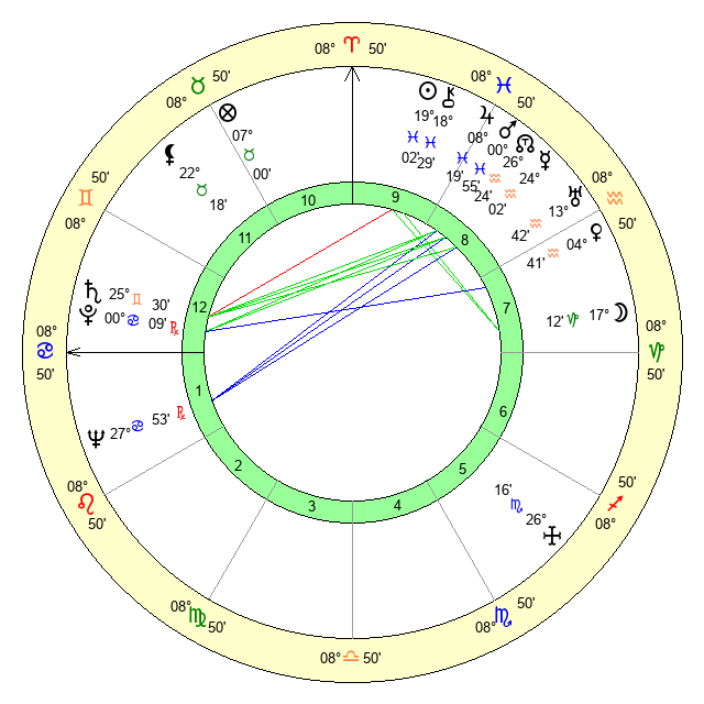 | Sun | 19 Pisces 3 | 20 Pisces 22 | 5 Cancer 53 |