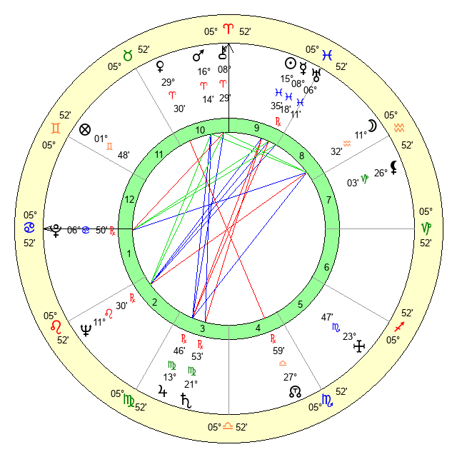 | Mars | 16 Aries 14 | 17 Cancer 41 | 29 Gemini 54 |