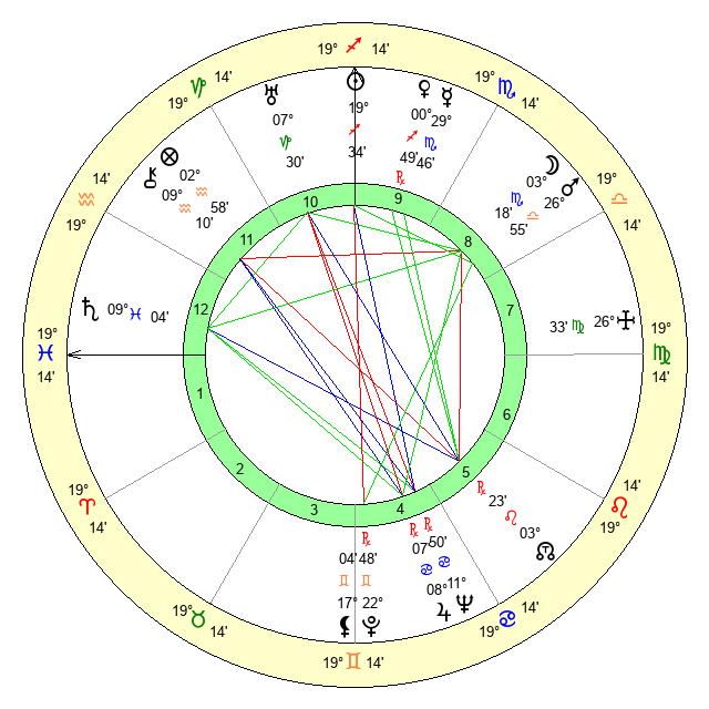 | Moon | 3 Scorpio 12 | 12 Taurus 8 | 7 Pisces 51 |