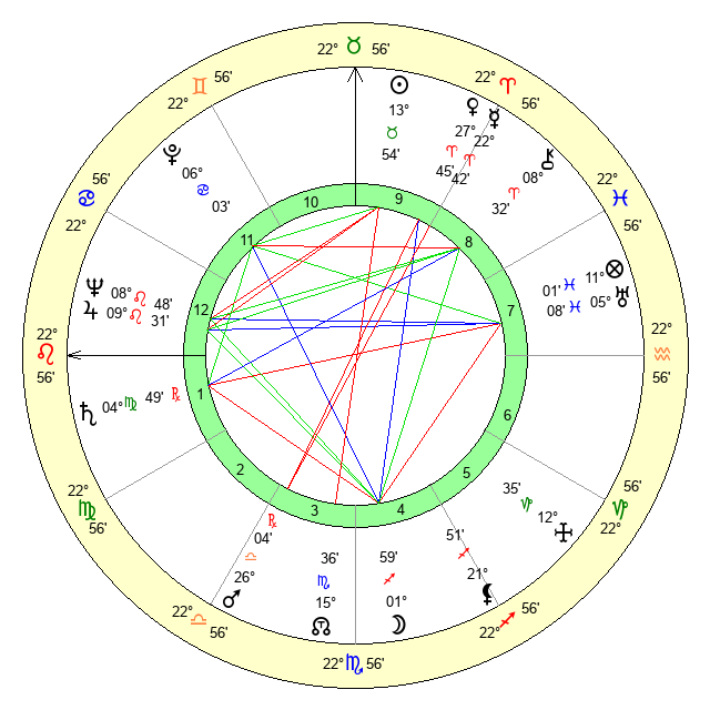 | Neptune | 8 Leo 48 | 1 Aries 12 | 11 Leo 46 |