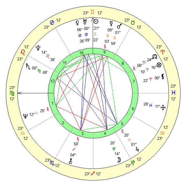 | Sun | 21 Gemini 22 | 21 Gemini 58 | 4 Virgo 4 |