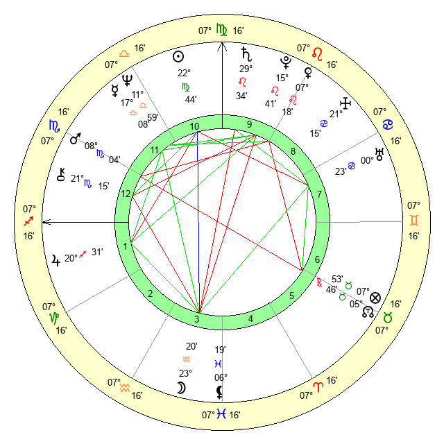 | Saturn | 0 Virgo 1 | 28 Pisces 49 | 6 Virgo 28 |