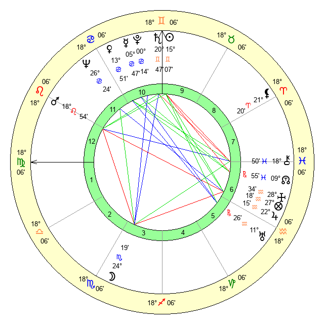 | Sun | 15 Gemini 7 | 16 Gemini 14 | 1 Libra 46 |