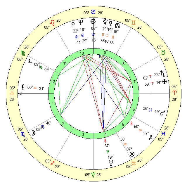 | Sun | 6 Cancer 19 | 7 Cancer 15 | 28 Libra 39 |