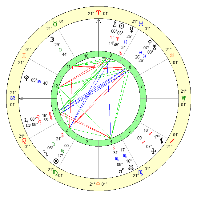 | Neptune | 8 Leo 55 | 29 Pisces 47 | 10 Leo 17 |