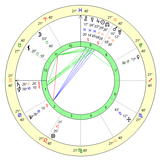 | Sun | 29 Aquarius 59 | 1 Pisces 18 | 17 Gemini 45 |