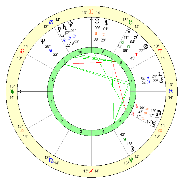 | Sun | 9 Gemini 8 | 10 Gemini 29 | 24 Virgo 41 |
