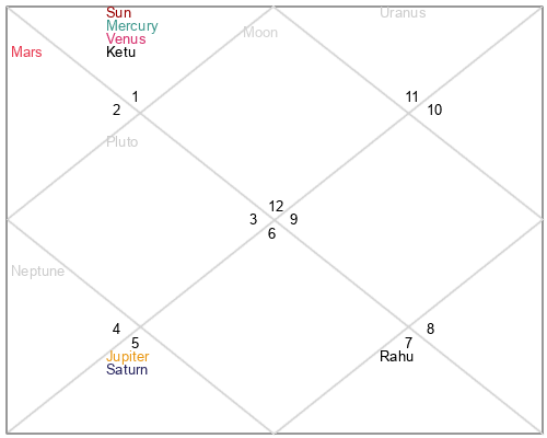 | Moon | 4 Aries 34 | 16 Leo 8 | 2 Aquarius 8 |