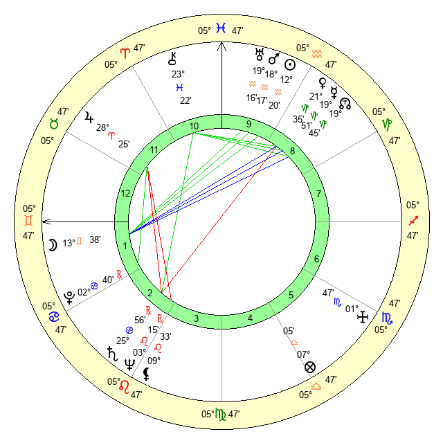 | Venus | 21 Capricorn 35 | 28 Pisces 2 | 5 Gemini 35 |