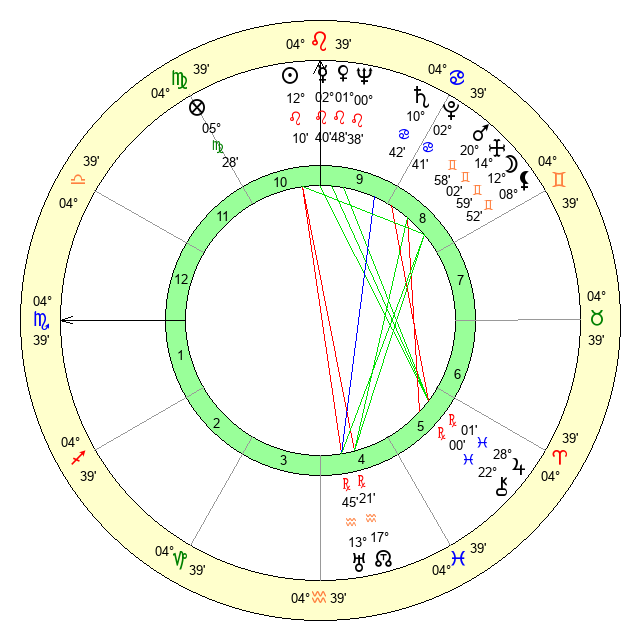 | Mercury | 2 Leo 41 | 5 Leo 52 | 17 Scorpio 58 |