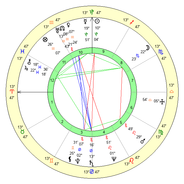 | Moon | 22 Scorpio 31 | 19 Gemini 1 | 5 Sagittarius 5 |