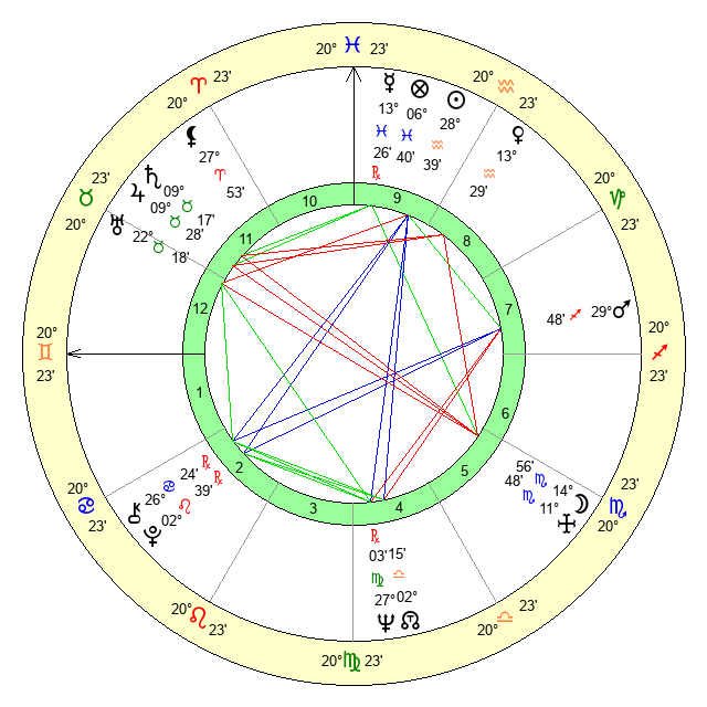 | Mars | 29 Sagittarius 48 | 17 Cancer 16 | 27 Aquarius 37 |