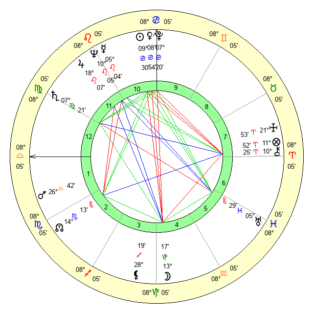| Sun | 9 Cancer 30 | 10 Cancer 6 | 21 Libra 2 |