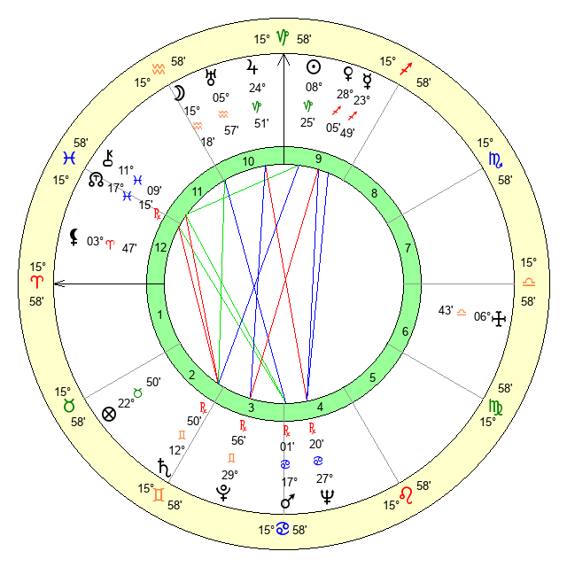 | Saturn | 13 Gemini 36 | 26 Pisces 0 | 15 Gemini 53 |