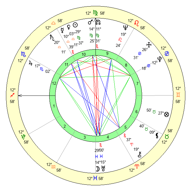 | Mars | 14 Virgo 25 | 0 Scorpio 56 | 19 Scorpio 40 |