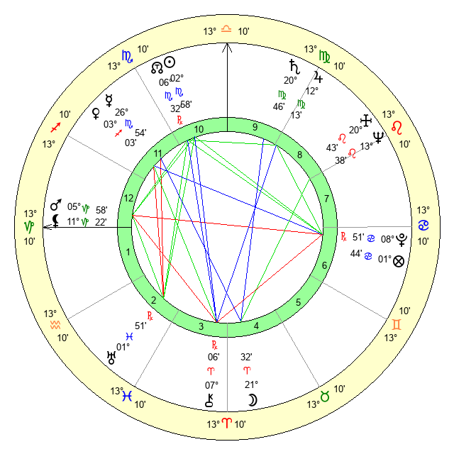 | Jupiter | 12 Virgo 0 | 24 Cancer 45 | 16 Virgo 39 |