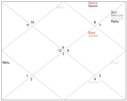 | Ketu | 10 Taurus 47 | 15 Virgo 34 | 7 Taurus 11 |