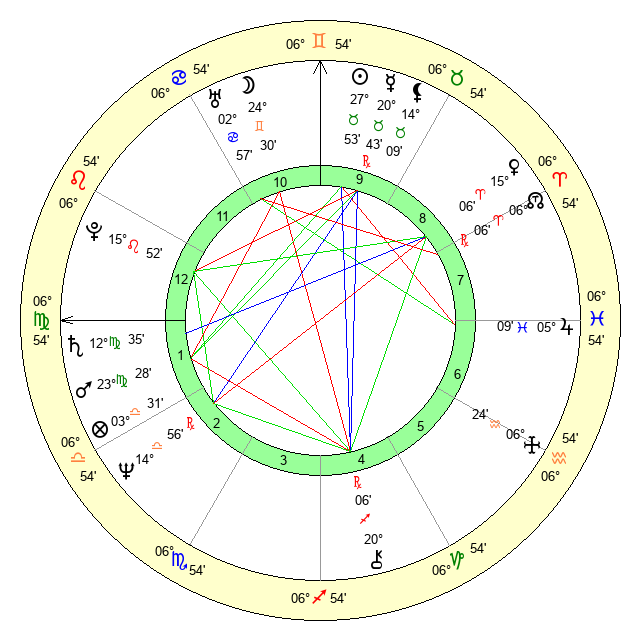 | Moon | 24 Gemini 34 | 15 Aquarius 48 | 2 Aries 4 |