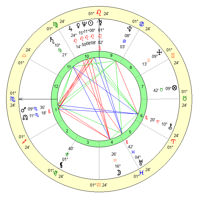 | Mars | 9 Scorpio 36 | 26 Virgo 7 | 19 Capricorn 26 |
