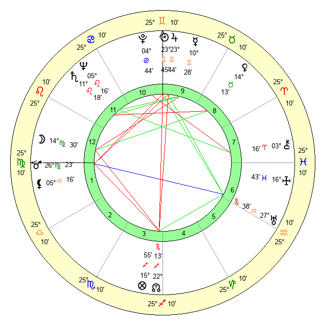 | Sun | 23 Gemini 45 | 24 Gemini 50 | 6 Libra 42 |